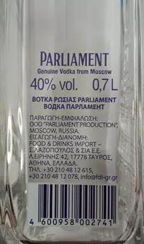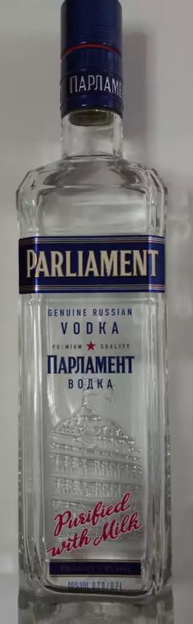 Πρόκειται για την βότκα με την εμπορική ονομασία «PARLIAMENT», αλκοολικού τίτλου 40% vol., συνοδευόμενου από την ένδειξη «Purified with Milk», σε προσυσκευασία 0.7L.