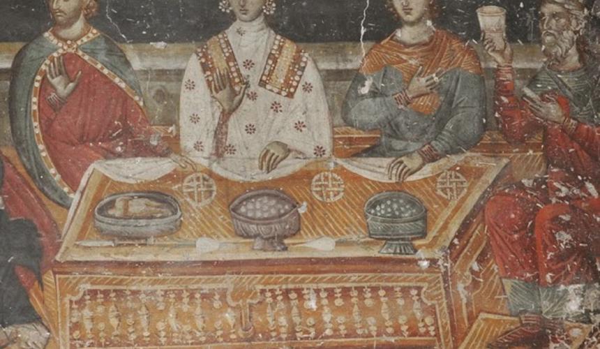 Στους πρώτους αιώνες της Βυζαντινής Αυτοκρατορίας συνήθιζαν να τρώνε ανακεκλιμένοι, σύμφωνα με μια συνήθεια που επιβίωσε από την αρχαιότητα, καθώς την εποχή αυτή το να τρως καθιστός αποτελούσε ένδειξη χαμηλής καταγωγής, καθώς συνηθιζόταν μόνο σε ταβέρνες και καπηλειά.