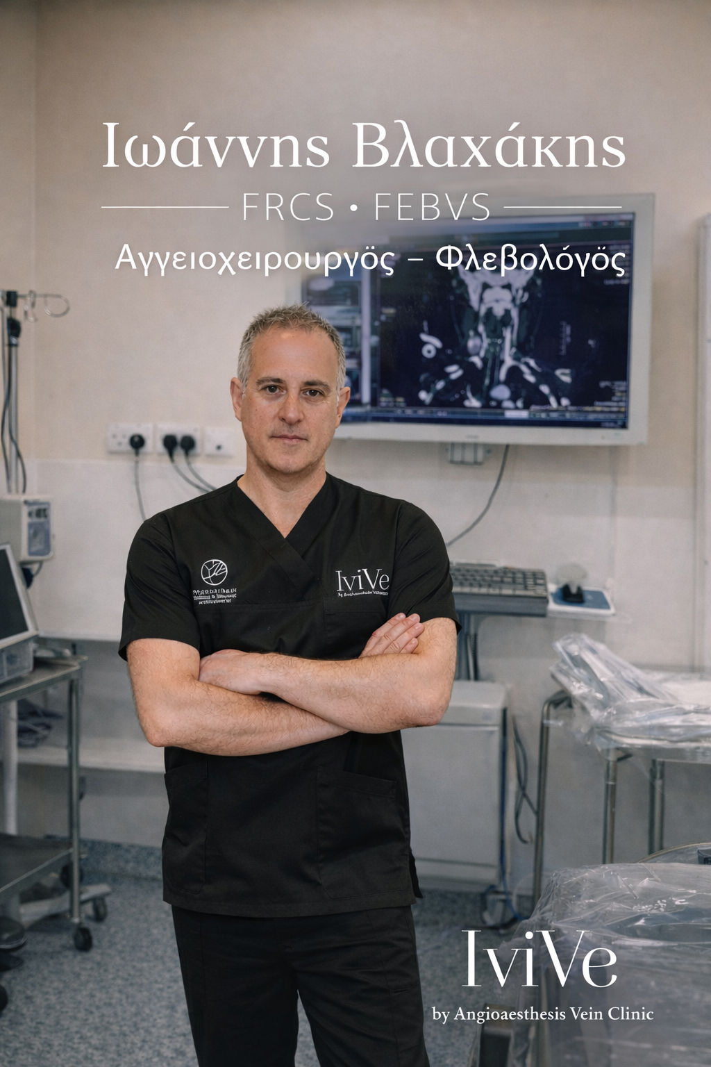 Ιωάννης Βλαχάκης MD, MSc, FEBVS, FRCS Αγγειοχειρουργός Φλεβολόγος , Υπεύθυνος Κέντρου «Αγγειοαίσθηση» T. Διευθυντής Αγγειοχειρουργικής, UCH London, Cambridge, Royal Bournemouth Hospital U.K.